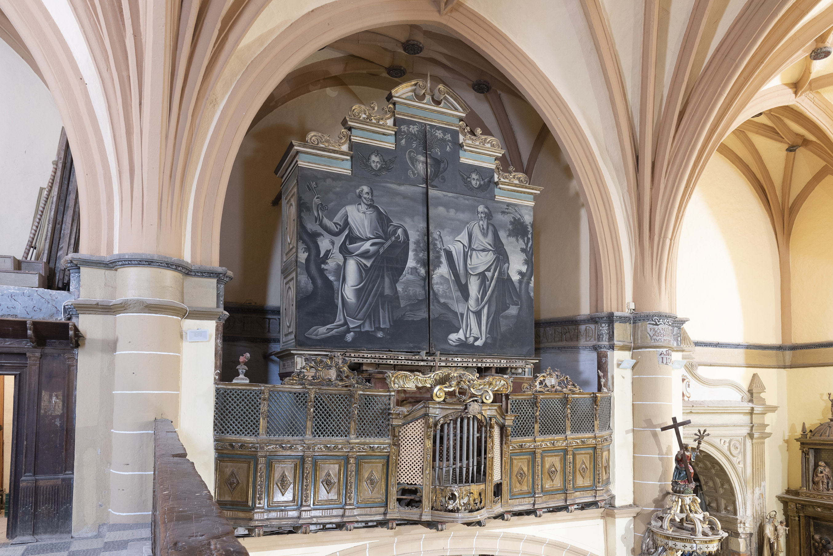 Sobre el tramo de los pies se sitúa el coro elevado, de construcción más reciente que el resto de la fábrica, y estructura a modo de pasarela, de anchura inferior al tramo de los pies.